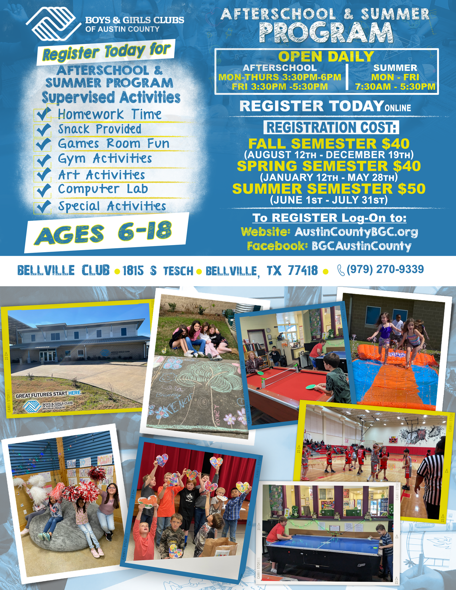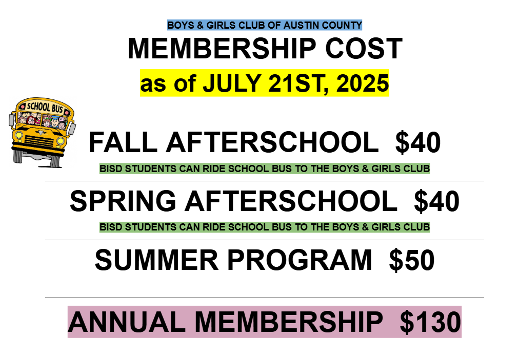 At the Boys & Girls Club of Austin County, we believe that every child deserves a place to go each day After-School and all day during the Summer.